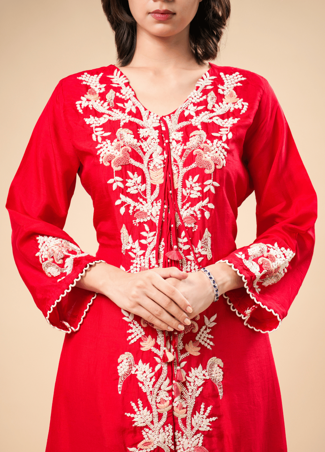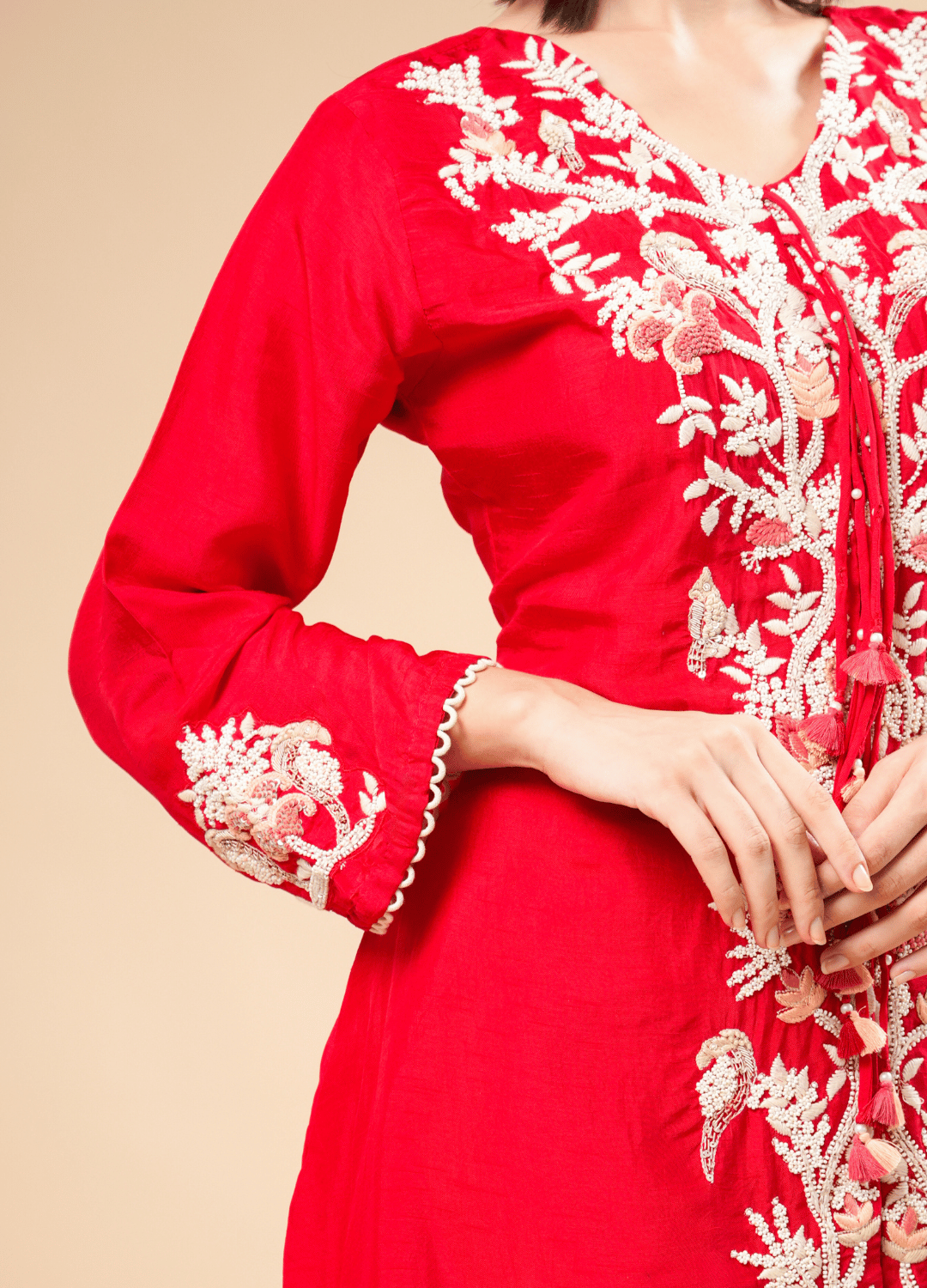 Work: Ivory Thread Embroidery on Front Panel & Sleeves